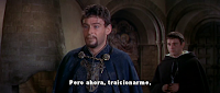 "(Becket) "Lord Gilbert llegará a ese juicio ya condenado, Sire. Tengo la intención de exscomulgarlo" (Henry fuera de sí) "¡Estás loco! ¿No comprendes que cuando atacas a mis nobles me atacas a mí, y cuando me atacas a mí atacas a Inglaterra?"