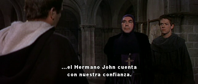 (Uno de los monjes pregunta) "¿Y éste?"... "Lon mantendremos aquí, con nosotros"... "Es depravado, su Ilustrísima"... "No tenemos miedo"