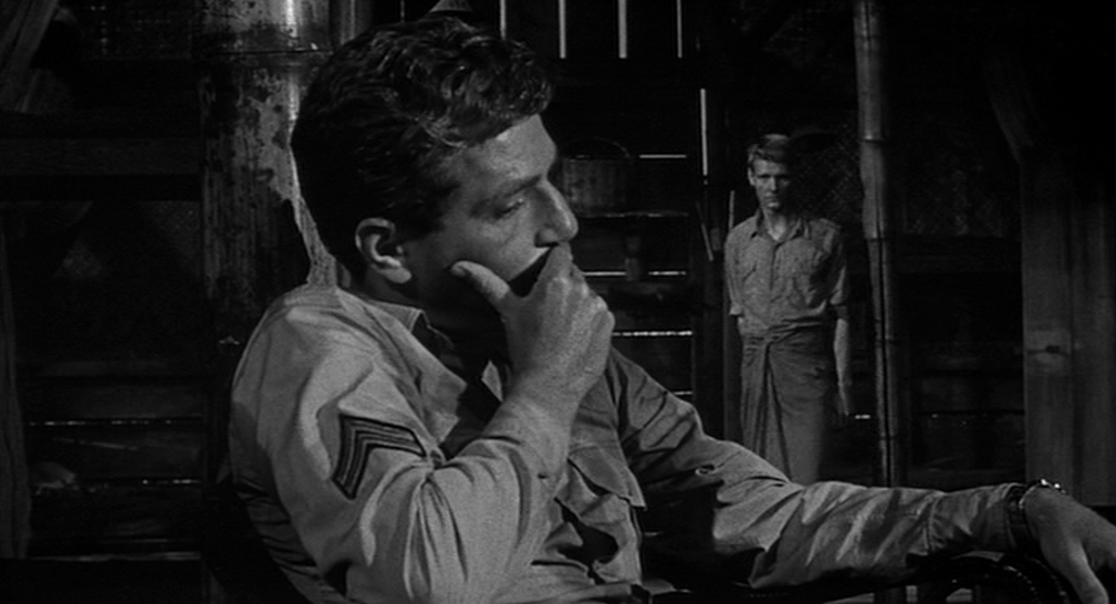 Cuando llega la noche, una vez convencido Marlowe por King para que le haga de intérprete en la venta de un diamante, salen de su barracón, burlando por todos los medios la vigilancia del implacable vigilante Grey. "¿Estás bien? ¿Podrás aguantar?" (Pregunta King) "Sí" (Una vez con el soldado japones Marlowe traduce) "Tiene dinero" "Cuéntalo" "Treinta mil, (Va traduciendo), cinco en dólares locales a 8 a 1" (King) "Ahora vuelvo con los bienes" (Por los alrededores se halla Grey con sus policías de campo)