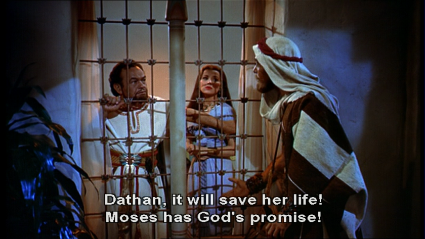 Luego, espera la llegada de Moisés para comunicarle que ha salvado a su primogénito haciendo huir a Séfora. Pero Moisés exclama que será su hijo el que caerá víctima del ángel de la muerte enviado como última plaga por Yahveh. Nefertari, aterrorizada, insiste en que ha salvado a su hijo, y que Moisés impedirá que su primogénito sea sacrificado por su Dios. Cuando Moisés exclama que nada podrá hacer contra la decisión de Yahveh, Nefertari vuelve a palacio convencida de que Moisés salvará a su primogénito.